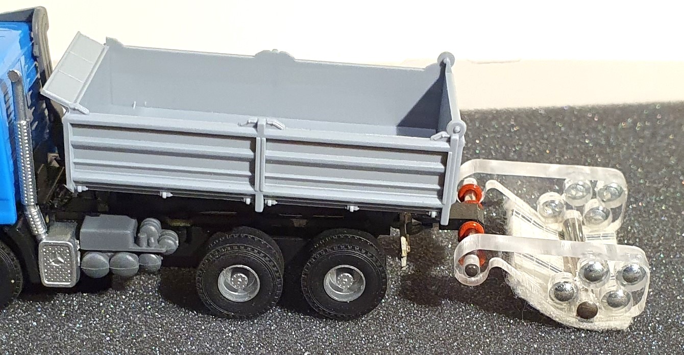 Die Fahrbahnreinigungs-Einheit wird dank der pfiffigen Konstruktion ganz einfach an jedes Fahrzeug von der Firma Viessmann® befestigt, welches über eine Anhänge-Kupplung verfügt.